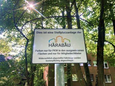 Die HARABAU verfügt über 662 Garagenplätze bzw. überdachte Stellplatzflächen. Zudem bewirtschaftet die Genossenschaft 479 offene Stellplätze.